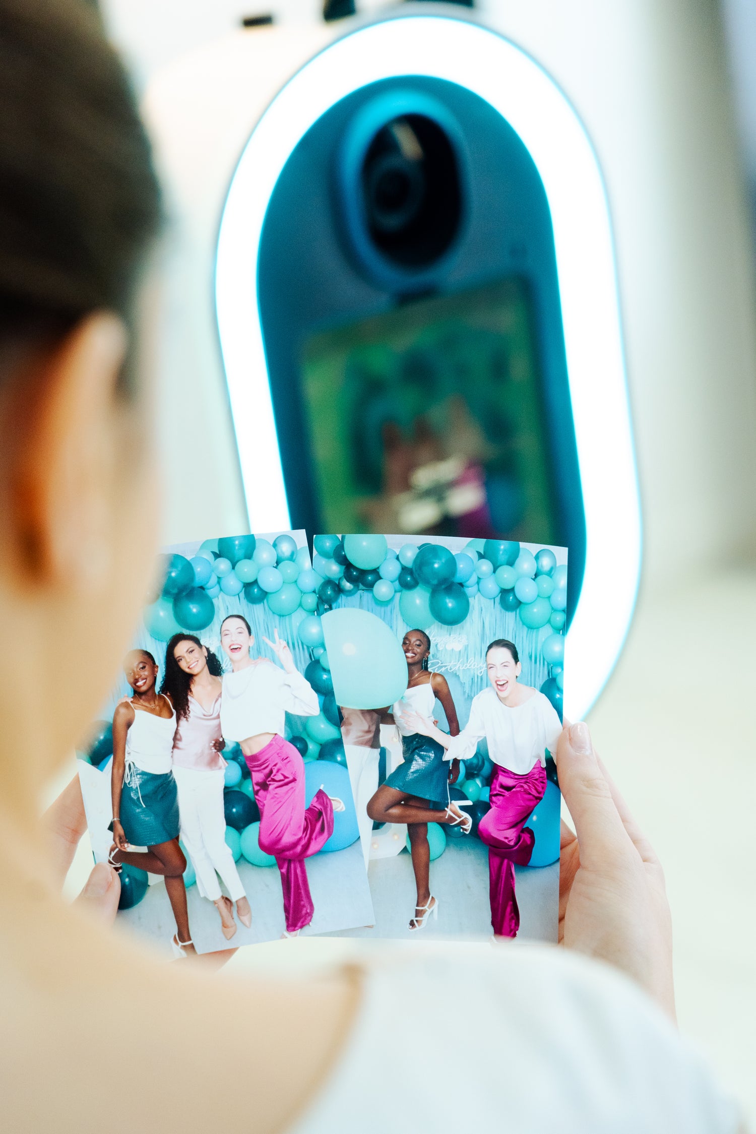 Fotokassa Premium har studiokvalitet på blits og bilder. AI-filtre, utskrift og tilpasning til din fest